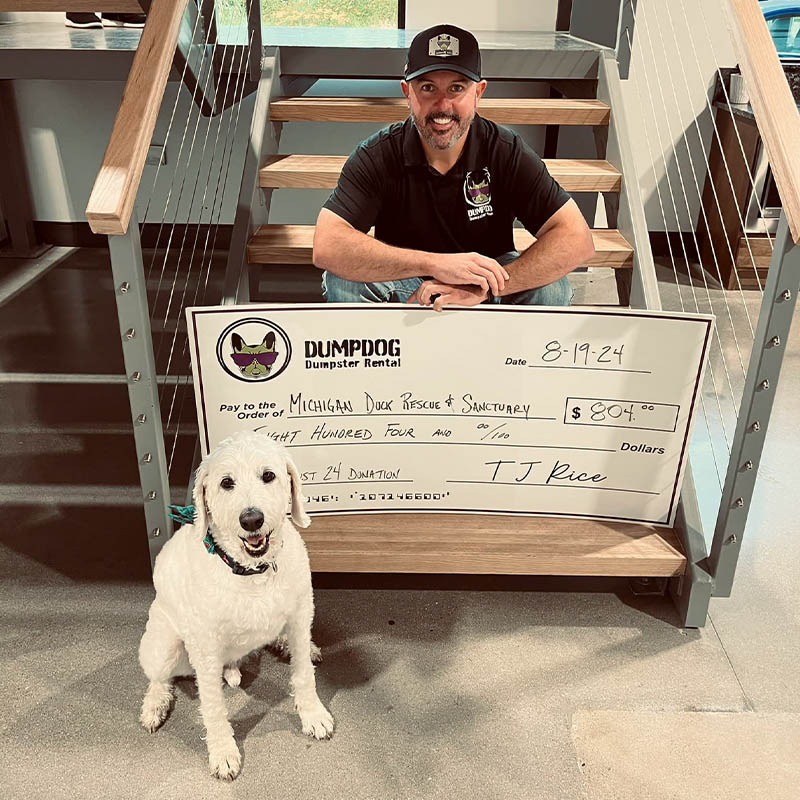 Dump Dog is not just a dumpster company; we’re also a community-based organization willing to support other local businesses and non-profits. Our heart is in animal welfare, which is why each month we donate 10% profit to animal rescues in our area. To date, we have donated more than $5,000 to help our furry friends. So each time you use Dump Dog, know that you are in turn helping support animals in need throughout mid-Michigan.